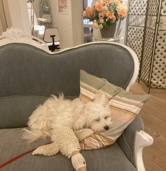 Min nye hund hedder Ella og hun er med på klinikken hver dag.